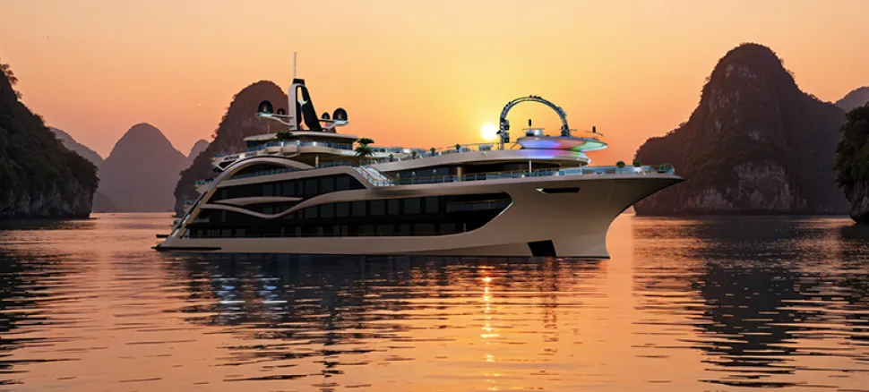 Khi hoàng hôn buông xuống trên vịnh di sản, hải trình 3,5 tiếng lãng mạn bắt đầu. Đây là khoảnh khắc để du khách chiêm ngưỡng vẻ đẹp huyền ảo của đất trời, thưởng thức bữa tiệc buffet tinh tế và hòa mình vào không gian âm nhạc sống động dưới ngàn sao.