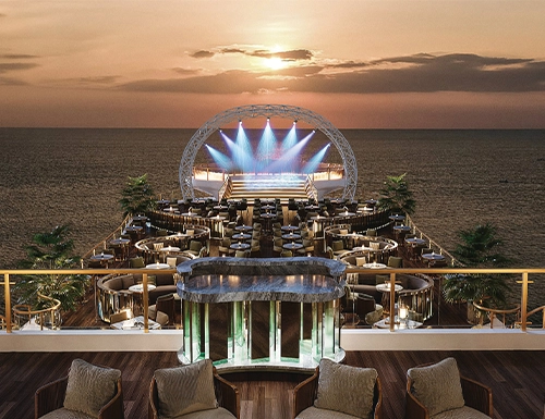 The expansive sundeck and grand outdoor stage form the iconic heart of Amorasae — a stunning venue for live performances and large-scale celebrations, set against the majestic beauty of Halong Bay.