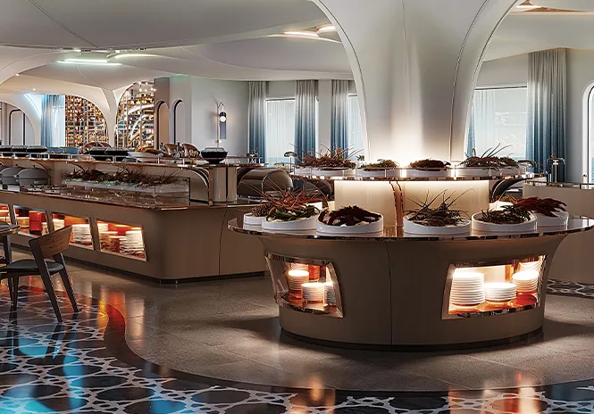 Tiệc buffet quốc tế được phục vụ riêng trên Skydeck Lounge